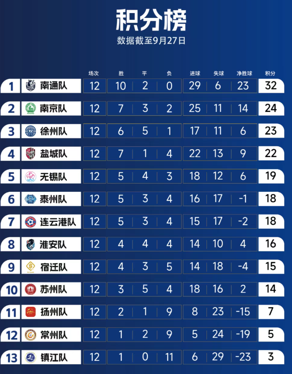 “苏超”成例赛排行榜