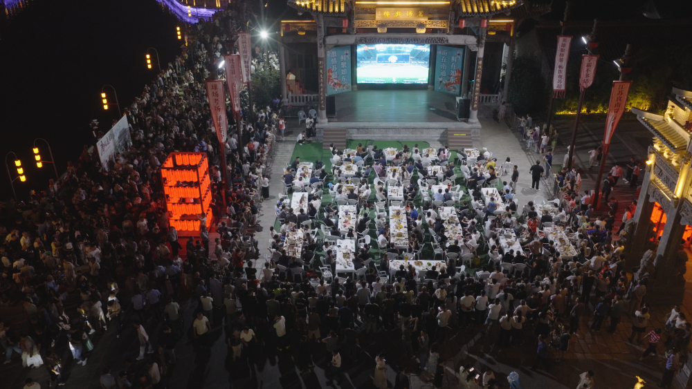10月7日,如东球迷在“第二现场”栟茶古镇不雅看南通队比赛(无东说念主机相片)。宫屹 摄